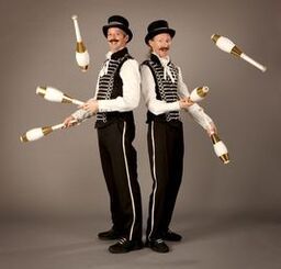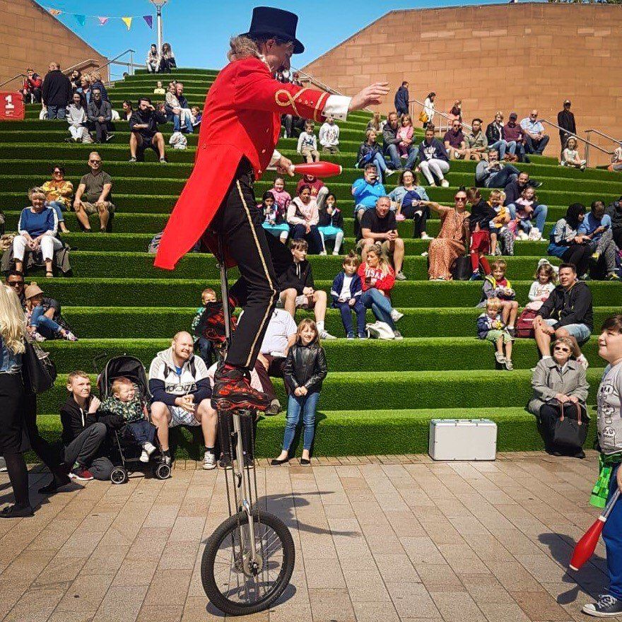 Speeding nimbly through the crowds, juggling as they go, these one-wheeled chaps in their bright striped costumes provide fast-paced, highly energetic entertainment!